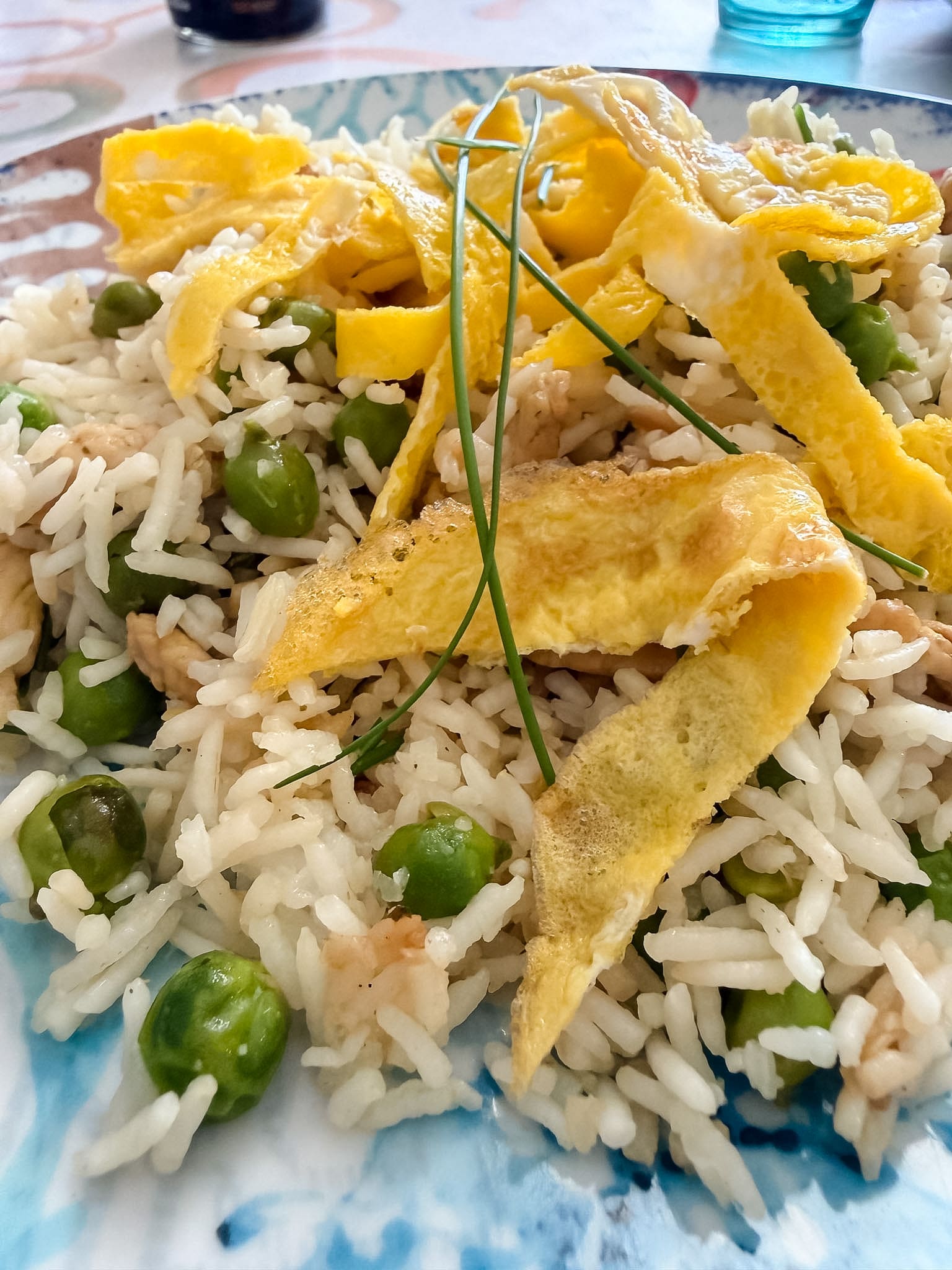 La versione che ti propongo è equilibrata e leggera, con pollo, uova e piselli freschi, arricchita da erbe aromatiche e zenzero per un tocco profumato e originale.